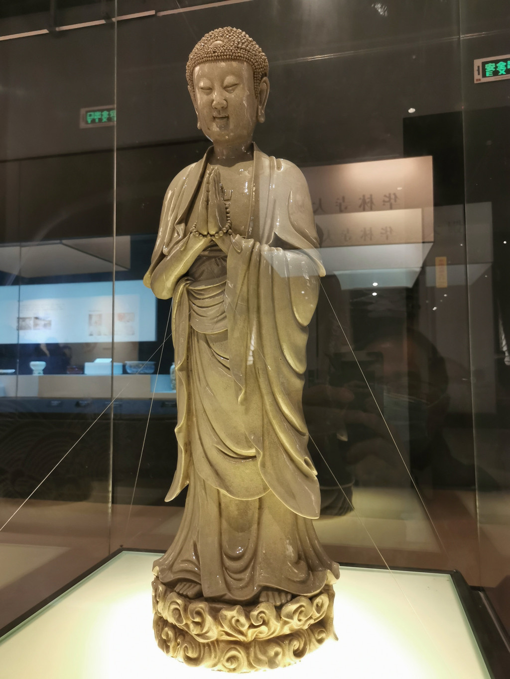 福建地区窑口众多,白瓷系以素有“象牙白”“中国白”美誉的德化窑著称,极具价值的文物很多,这件明代瓷塑工艺大师何朝宗的塑观音立像即是其中之一。