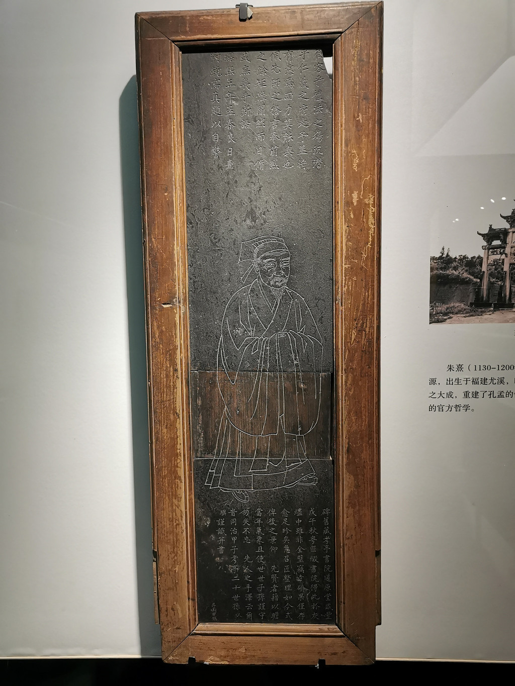朱熹自画像碑(清)。朱熹(1130~1200),南宋理学家、教育家。祖籍江西婺源,后寓居福建,是闵学派的代表人物。