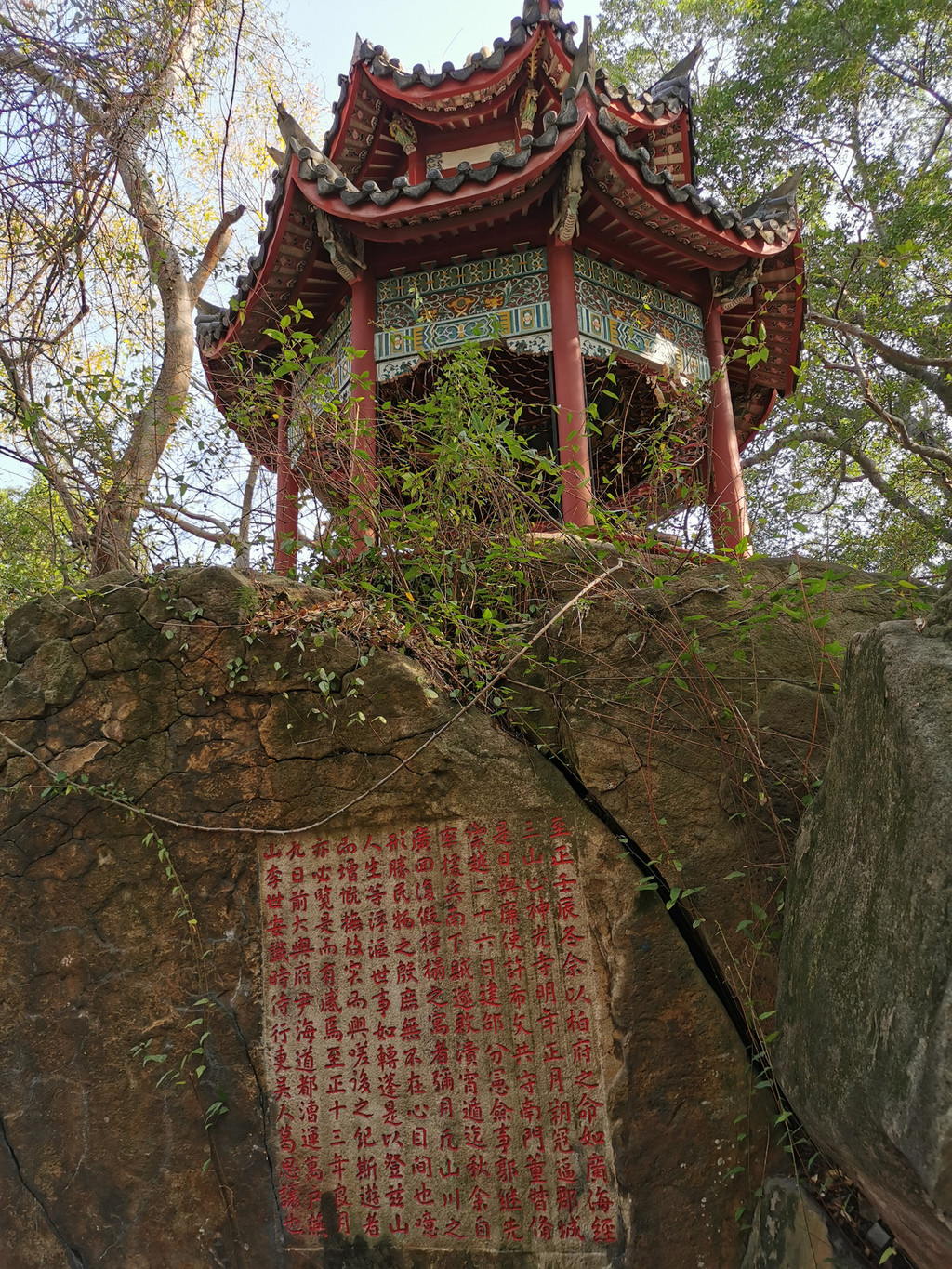 百字碑。清康熙十一年福州人萧震的题刻,共一百个字,记录了重修邻霄亭事件,借此颂扬康熙皇帝“休息吾民”“山海无事”的治世功绩。