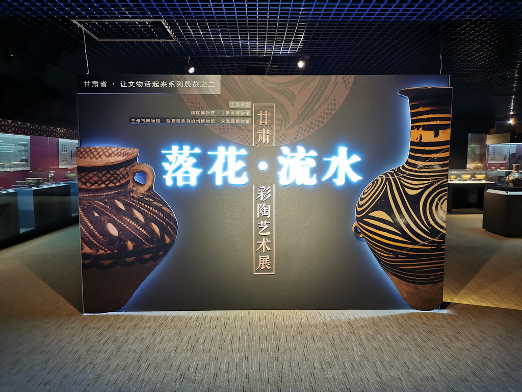 友情客串的甘肃彩陶艺术展,以彩陶纹饰为主题,展出甘肃省博物馆、兰州市博物馆、临夏回族自治州博物馆、永登县博物馆、甘肃省文物考古研究所文物198件(套)。通过“落花”“流水”“阳光”“和谐”四个单元,展示黄河流域史前文明和古代先民的审美意趣与生存环境、生活方式、生产方式。