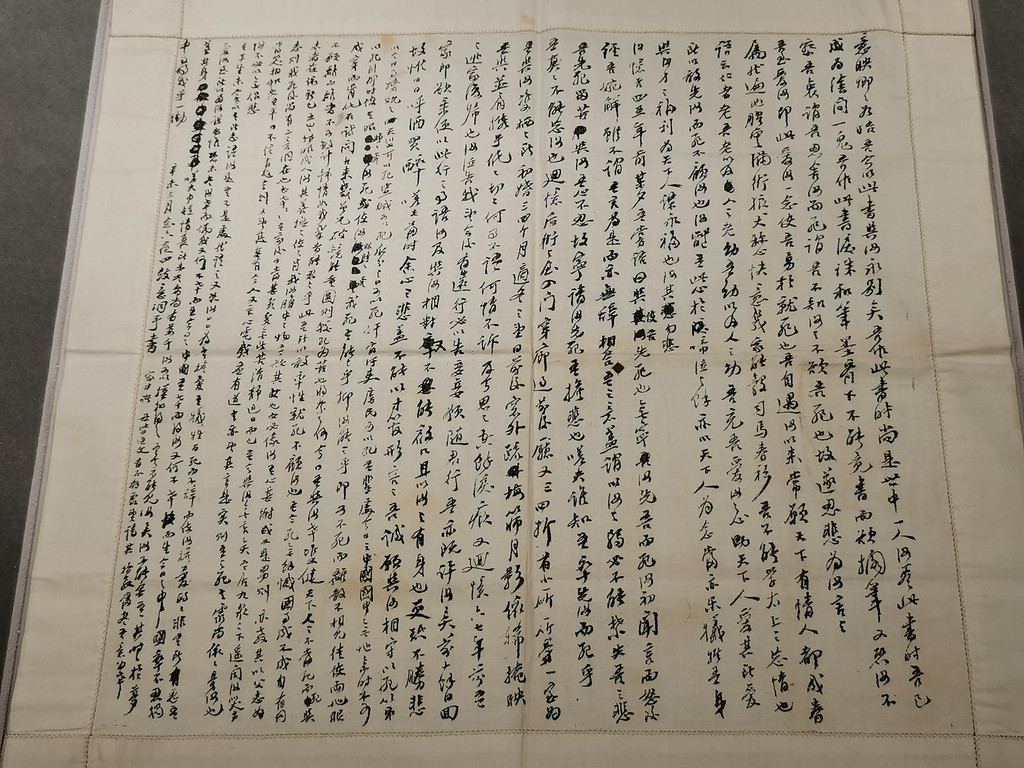 林觉民《与妻书》。福建博物院藏。这是1911年黄花岗起义前的4月24日深夜,林觉民在一块白色细布手帕上以墨笔写给其妻陈意映的信。记述其为推翻帝制、建立共和、抱定为革命捐躯的决心,感情真挚细腻,言词慷慨激昂,表现出革命英雄气慨和坚定立场,一直为后人传颂。1959年由林觉民之子林仲新捐献。