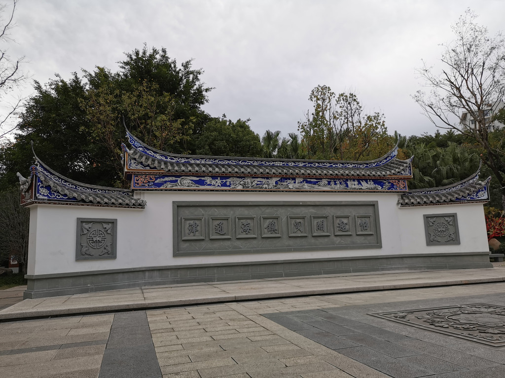 主体建筑富有地方特点,几字形屋顶体现福建民居特色,图腾柱体现“闽”字内涵,浮雕墙体体现文物元素。