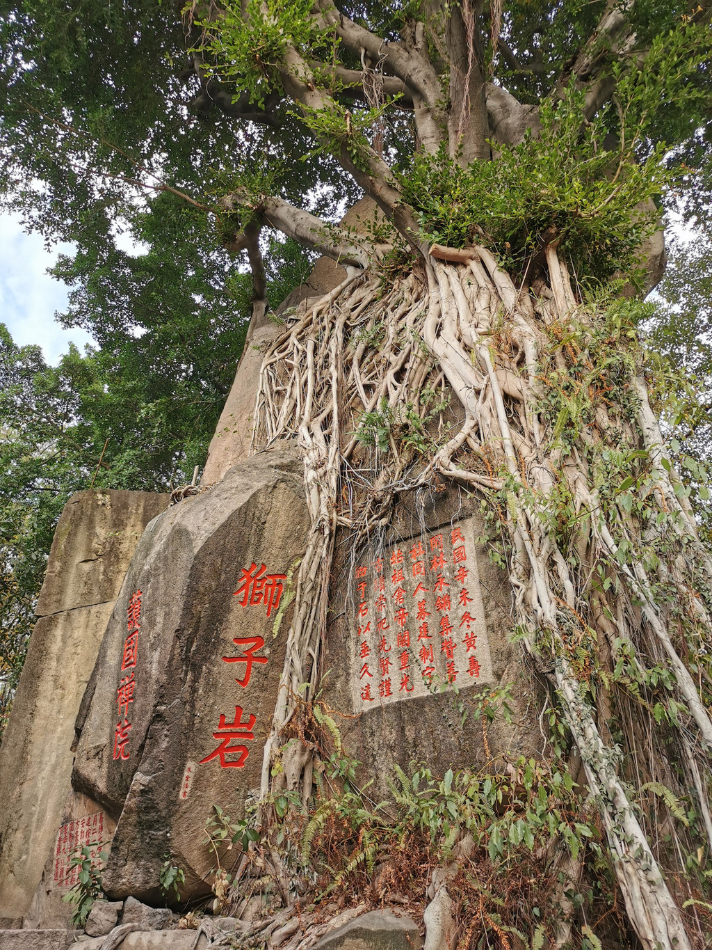 狮子岩,因为很像一只盘踞蹲坐的雄狮而得名。