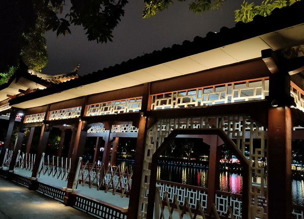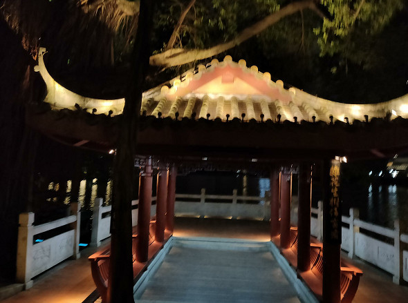 湖畔的更衣亭规模已经远超一般的亭子了,私以为称其为轩或榭都不为过。别看着似乎很新的样子,其实它的始建年代可以追溯到五代时期,相传闽王王延钧每与王后金凤乘船游湖,就在这里更衣。