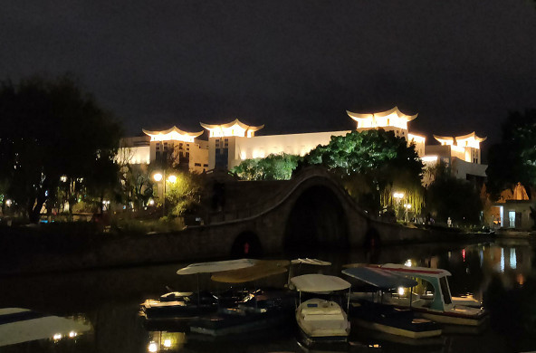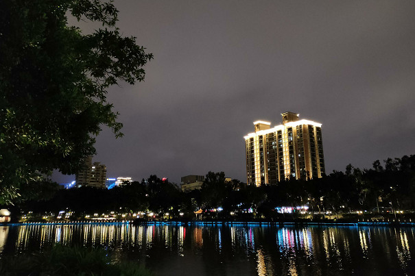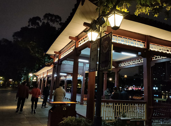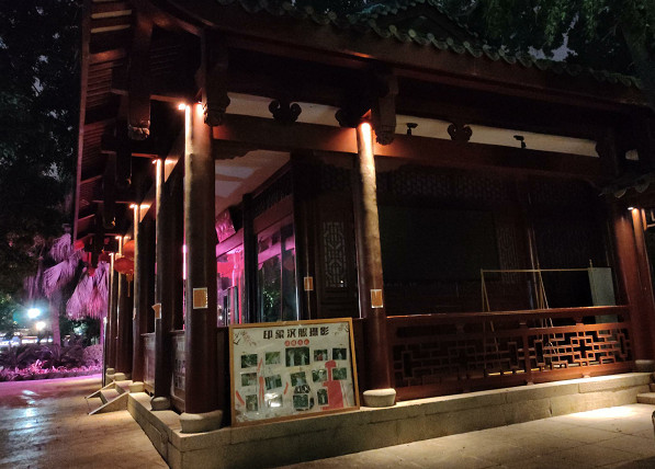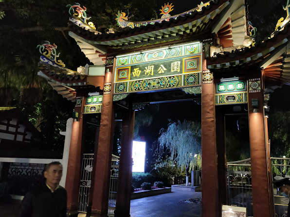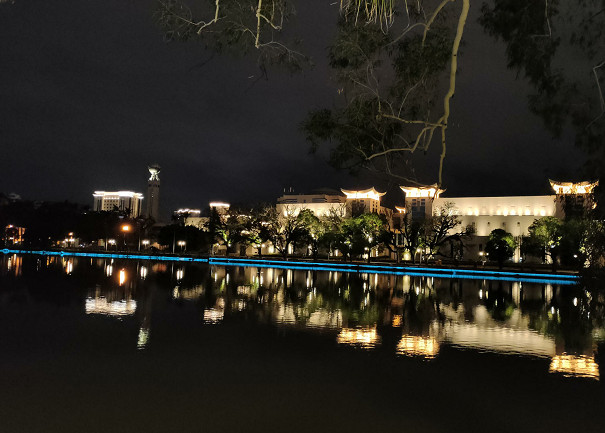 我们到的时候已经夜色降临,一旁的福建博物馆早已经闭馆。这样的格局与杭州西湖也有异曲同工之妙,浙江省博物馆也座落在著名的西湖湖畔。