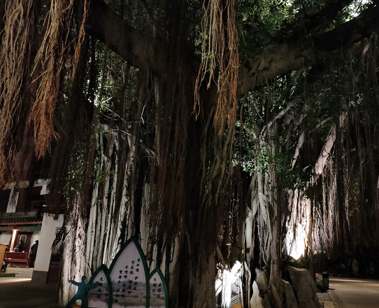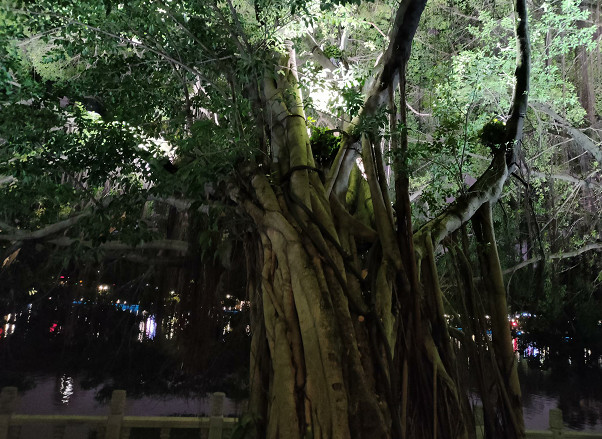 湖边还有亭子,假山溪石并不少见。更让我们称奇的还是几株大榕树。福州被称为榕城,并非浪得虚名,每座公园都会栽种几株榕树。但凡有些年头的地方,那榕树也必然是有些年头的。