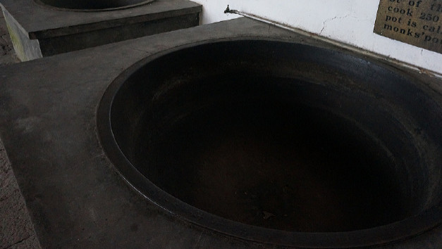 涌泉寺最盛的时候,僧人曾达1500多人,香积厨仍然保留着四口巨锅,是宋朝时所制,距今有960多年历史。其中最大的一口铸造于北宋仁宗景祐年间,可装水20担、下米5担,供千人食用。。