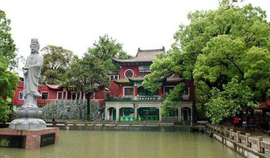 回龙阁前的放生池是北宋绍兴年间开辟,元明两代重开修缮,清乾隆年间砌池岸石栏。现在的放生池内还养着上百只乌龟和红鲤鱼,最大的龟已经有高龄上千年了。池内塑有高大的滴水观音石雕像,手中的圣水瓶可流出圣水。
