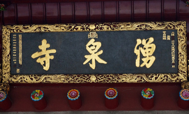 大门两侧的石柱上写着一副门联“净地何须扫,空门不用关”。寺门上的泥金匾额“涌泉寺”三个大字,据说是康熙皇帝的手书。联首的“净空”两个字,还是某代住持的名字。