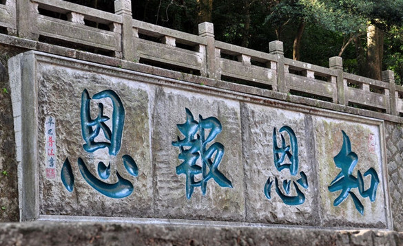 还有一种说法就没有什么传奇色彩了,相传在建寺的时候,这里没有水源,后来有位罗汉在梦中指点,才找到了一处涌泉,因此而得名。这个故事就太平常了,完全没有传说故事应该有的跌宕起伏。但是听起来更可信,因为涌泉寺的入口处还有一块石刻,“知恩报恩”。