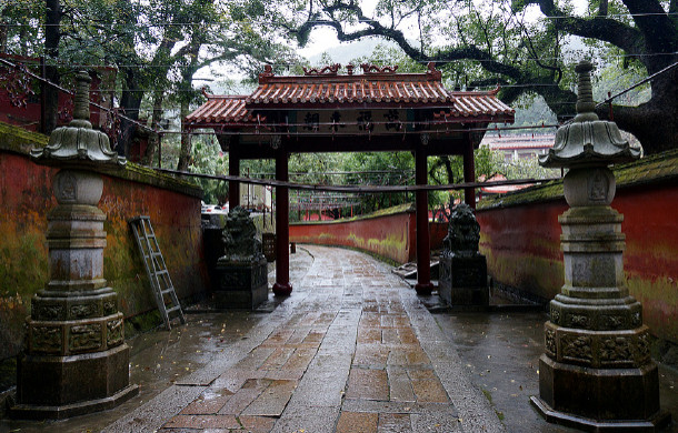 刚听到涌泉寺这个名字的时候,我首先想到的就是涌泉报恩,以为这里有一个“受人滴水之恩,当以涌泉相报”这类劝人为善的哲理故事。看了介绍才知道其实不然,纯粹是因为有口泉而已。据说涌泉寺原来寺前有罗汉泉,原来是一个深水龙潭,潭内潜着一条毒龙,时常出来危害百姓。唐建中年间,太守裴胄请灵峤禅师入山诵华严经降龙,并在潭边建华严寺,不过在唐武宗灭佛时代,寺庙被毁。五代后梁开平年间,闽王王审知大兴土木填潭造寺,并到装潢侯雪峰寺邀请神晏法师任住持,取名国师馆,后来改称鼓山白云峰涌泉禅院,宋真宗赐额“涌泉禅院”,明成祖赐名“涌泉寺”,寺名沿用至今。