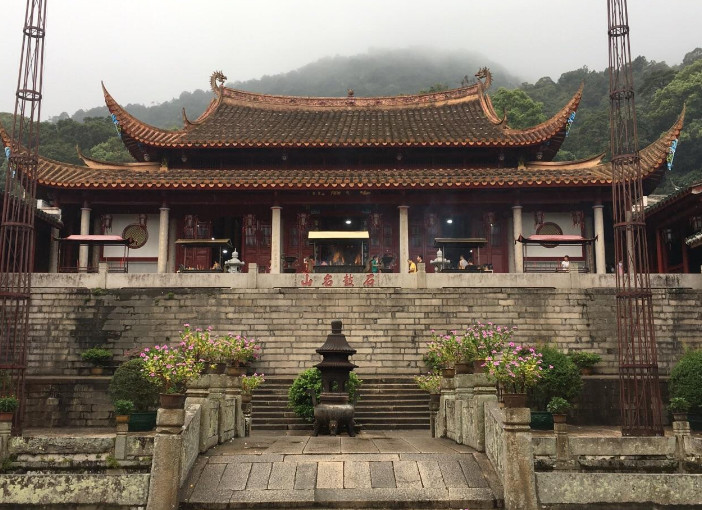 穿过第七亭就可以直抵古刹涌泉寺,海拔455米,面临香炉峰,背枕白云峰,石鼓景区就是以涌泉寺为中心的,东有回龙阁、灵源洞,西有十八景,南有罗汉台、香炉峰,北有大顶峰、白云洞,可谓景点林立。其实我们也不是很想去拜谒这座“闽刹之冠”,无奈喝水岩和清源洞被划到了景区里,避不开人家的大门啊!