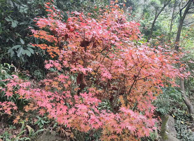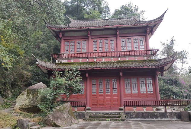 从伏虎祠走进岔路,这里有一幢两层建筑,红窗黑瓦,大概这就是石钟阁了。沿着一旁的路前往紫竹苑,但是走着走着就有些糊涂。因为明明还没有看到竹林,可是路边的指标牌却显示我已经走过了?再往回走了一小段,看到路旁的地图才知道还在前面。于是再度折返,果然是有一点竹子的,但并没太大的规模。