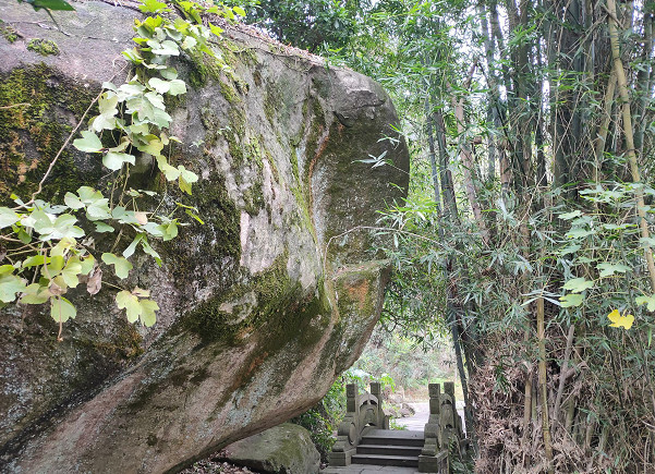 从一旁的小径可以通往法华岩一带,这里巨石参差,看着像是搭积木搭起来似的,而法华岩就位于正中的位置。