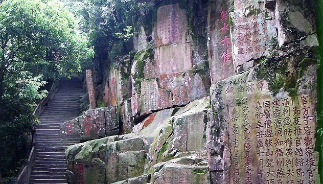 如果书法爱好者来到这里,估计能在这里呆上一整天。景区的范围并不很大,但是摩崖石刻十分集中,历代名人的题刻诸体兼备。而对于我们来说,也就只能挑拣几位比较熟悉的名字瞻仰一番。