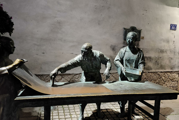 南后街上还有不少雕塑,表现了旧时福州的刻书、裱画、花灯等情境,这里的花灯据说也是十分热闹的。