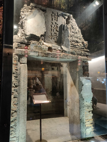除了美食,泔液境遗址用钢化玻璃罩起来的,这是三坊七巷发现的年代最早的牌坊,距离今天已经有八九百年的历史。不远处还有宋朝宣和年间的石槽,一口古井可能也是宋朝的遗存。
