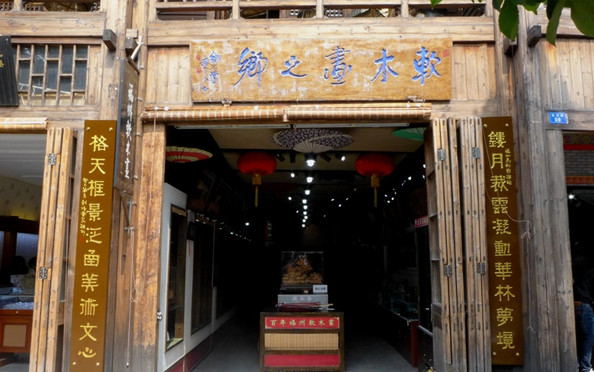 福州工艺三宝的软木画、脱胎漆品和寿山石,在这条街上都可以买到。可能价格不会是底价,但也不见得遗到离谱。软木画被誉为“无声的诗”、“立体的画”,可以说是福州民间雕刻工艺品的精粹;脱胎漆器与北京景泰蓝、江西景德镇瓷器并称中国传统工艺三宝,是具有民族风格和地方特色的艺术珍品;寿山石分布在福州市寿山乡,与青田石、昌化石、巴林石合称“四大印石”。此外,还有精美鲜艳的福州纸伞,沿街挂在那儿就是一道美丽的风景。只是我并不是很明白,牛角梳为什么也算是福州的特产,总感觉牛角制品应该分布在西部地区的。