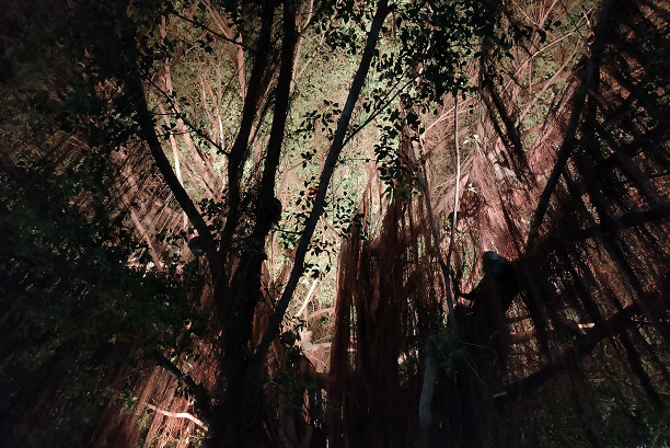 泔液境后还有一株大榕树,那垂下的气根仿佛是一排排的流苏。如果它们落地生根,不用多久这里就能长成榕树林了。独木成林,这种神奇的树在榕城真的是随处可见。尽管我们在广西已经看过两江四湖的大榕树,可是再次看到它们,还是会觉得震撼。