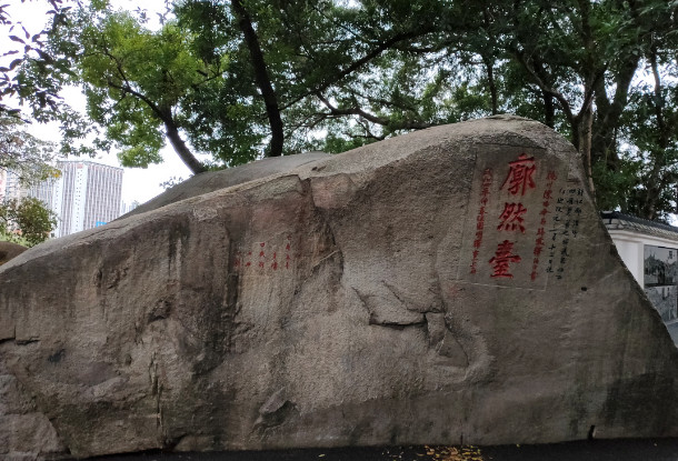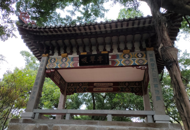 走到浩然亭已经到了主入口处,这座亭子是长方形的,背山面江,当年这里因为没有高楼,极目远眺的话可以看到闽江。现在当然只能当作一座休息的亭子,亭匾是书法家沈靓寿所书。