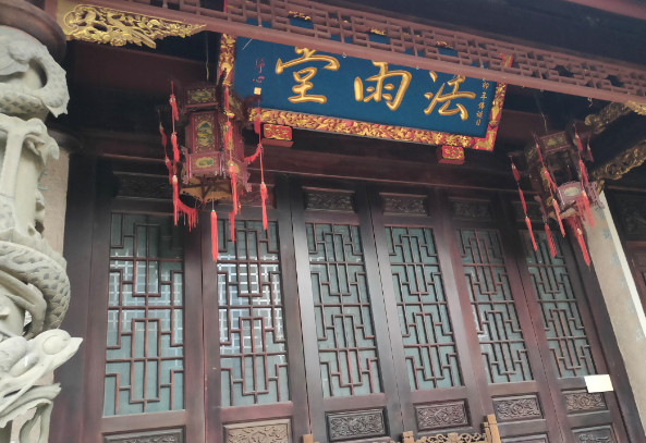 法雨堂看着也很古典的样子,殿堂的规模也不算小,可惜的是并不开放。我们从另一侧出寺的时候,居然发现了戚公祠的圆洞门,原来戚公祠还有一道门是在这里。