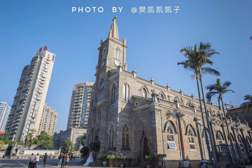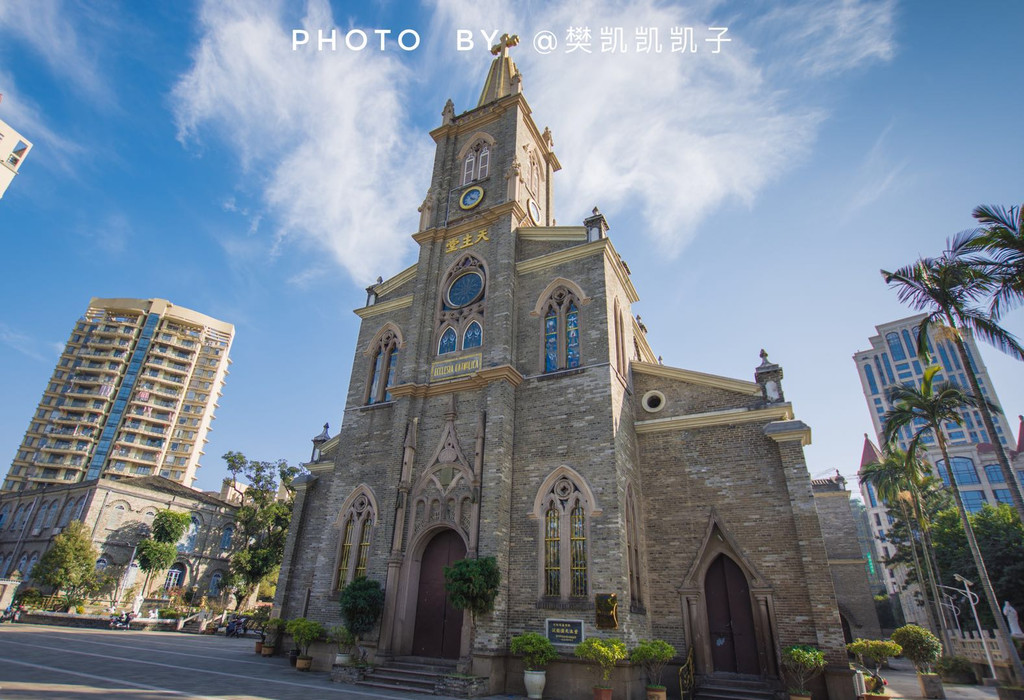 泛船浦就在福州的南江滨,教堂的主体是砖木建构,从外侧看,灰色的石砖仿佛并没有那么出彩。但是细细品味,无论是整体的设计还是上尖下方的窗台细节都散发着浓郁的欧式风情。高达20多米的教堂主楼,也是很有气势。