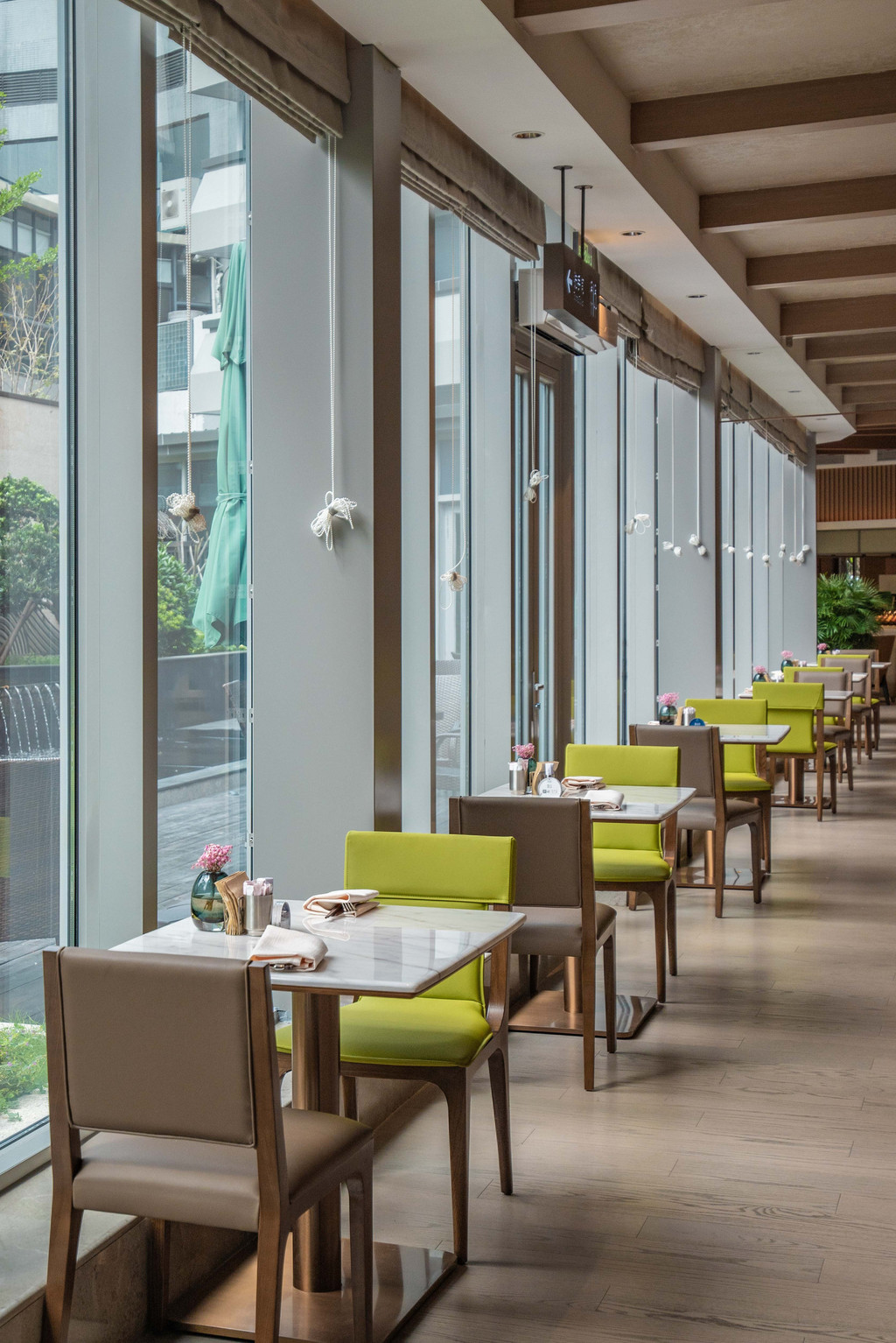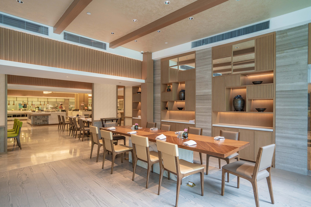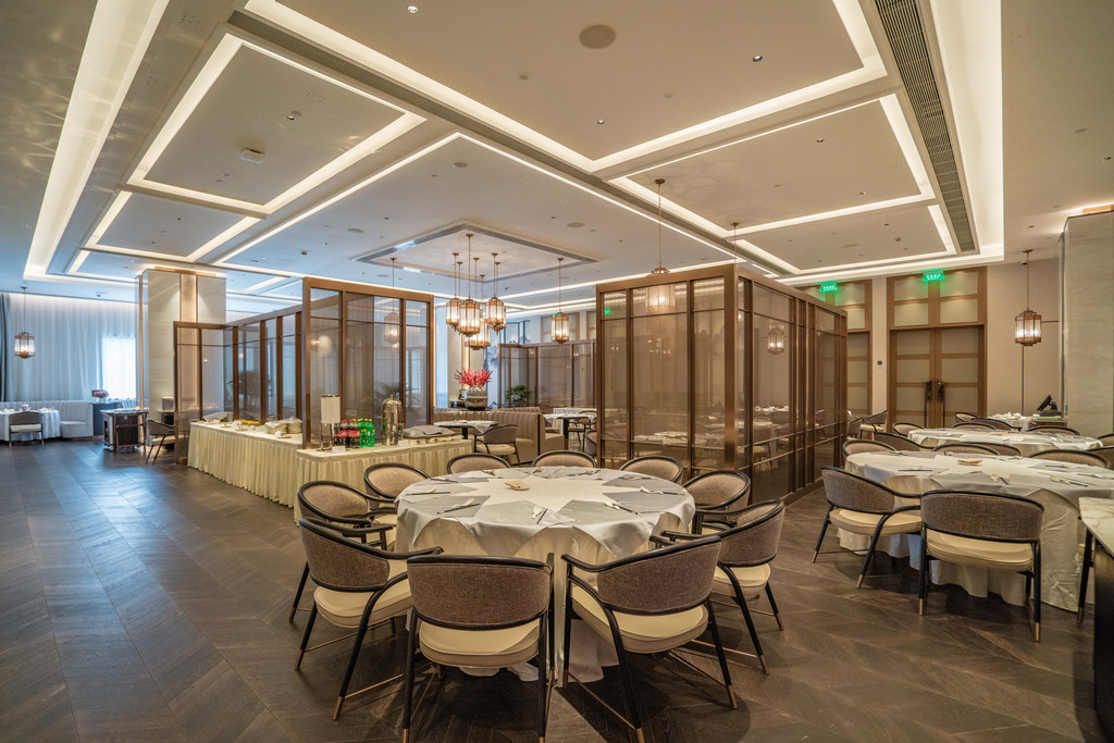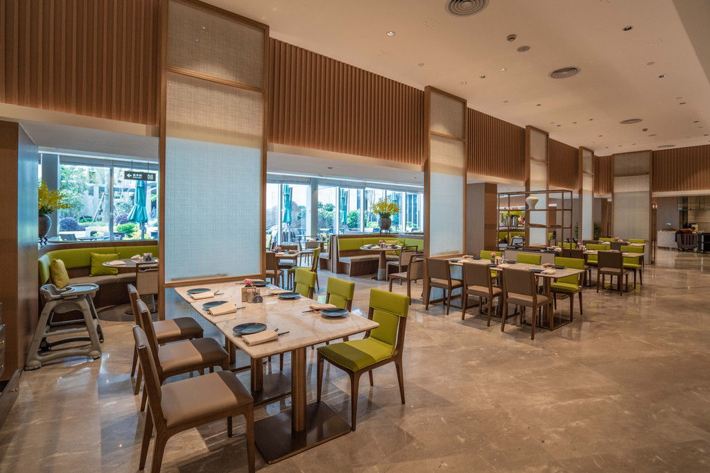 秀十坊餐厅位于酒店北楼一层,入住酒店期间的早餐和晚餐都是在这里解决的。如果你是一人商务差旅,不妨坐在玻璃前的小座,在酒店的中庭花园边享受美食。