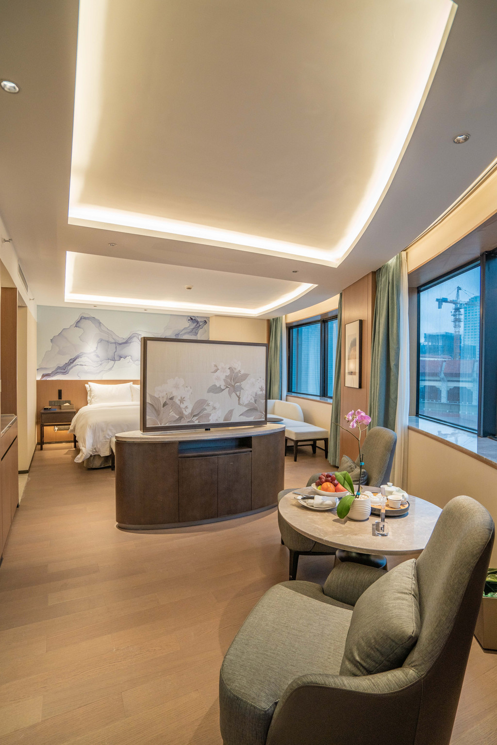 住进一间位于10搂的行政甄选房,超90度欣赏福州城市景观,车水马龙的五四路,霓虹璀璨的中央商务区,在客房里看尽榕城的热闹繁华。