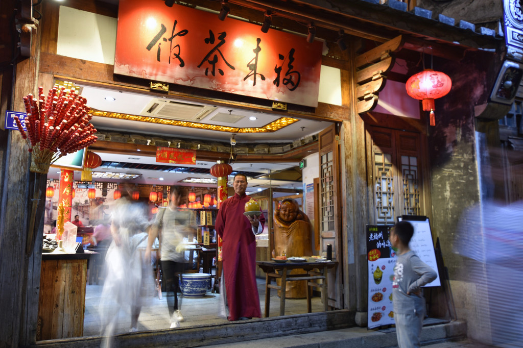 作为福州市区唯一的一个5A级景区,无论白天还是黑夜,南后街上三都是熙熙攘攘的。如果说白天在三坊七巷,看的是交错的巷弄、高翘的飞檐。那么夜晚,则是寻找福州文化之根,和城市中的慢生活。探寻文化,在福来茶馆你可以听一段古老的曲艺福州评话;而城市的慢时光,则就藏匿在主街上和巷弄里的咖啡馆了。