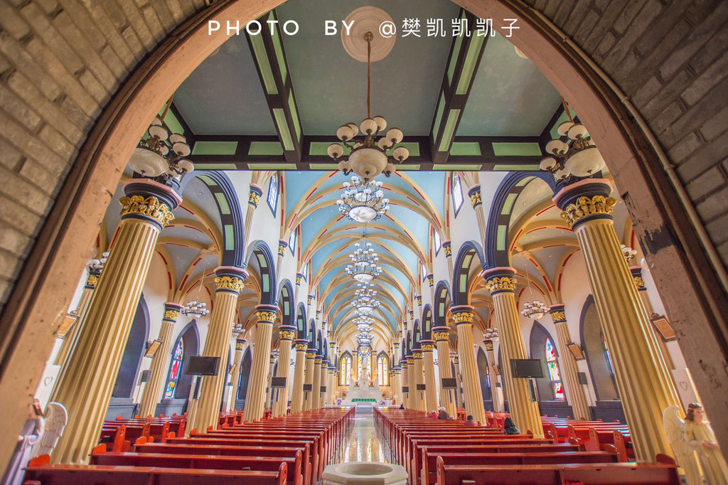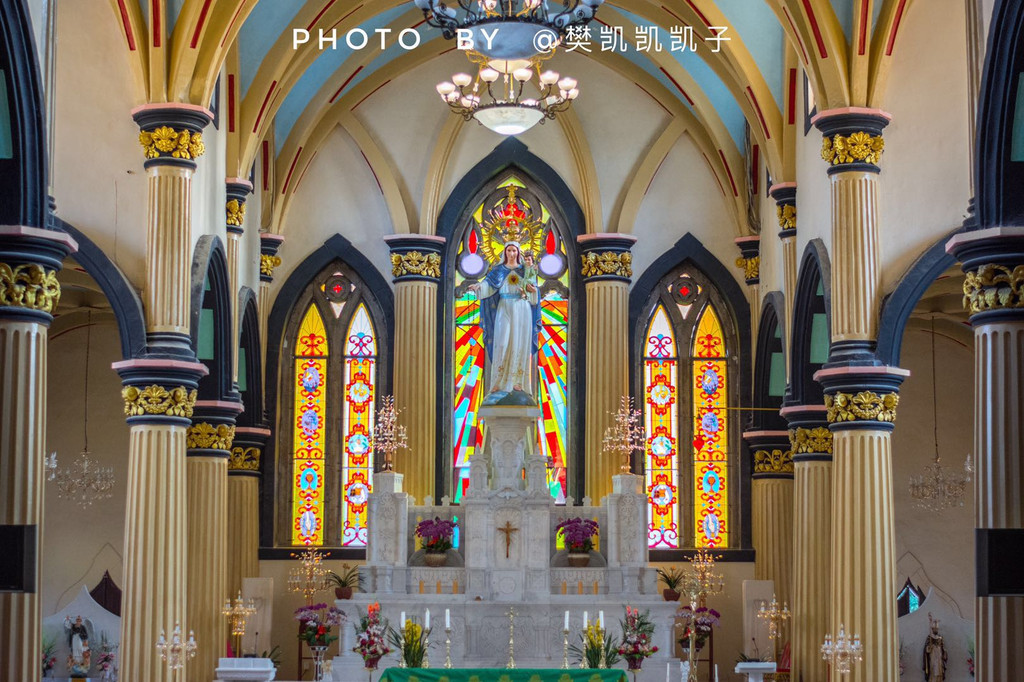 以前到访过多次,却只是在近期才第一次走进了泛船浦教堂内部,教堂内曾是钟汉良、周迅、佟大为等人主演的电影《我的早更女友》取景地,电影里浪漫的婚礼场景就是在这里完成的。不得不说,真的走进教堂内部你才知道泛船浦教堂究竟有多美。由金色的欧式石柱托起的拱形堂顶被倒影在入镜的地板上,若你在下午时分,斜阳会透过两侧窗户上的五彩玻璃,阳光撒在红色的座椅上,有一种说不出的美。静谧、浪漫,或许这就是许多人心目中最理想的婚礼的殿堂了。