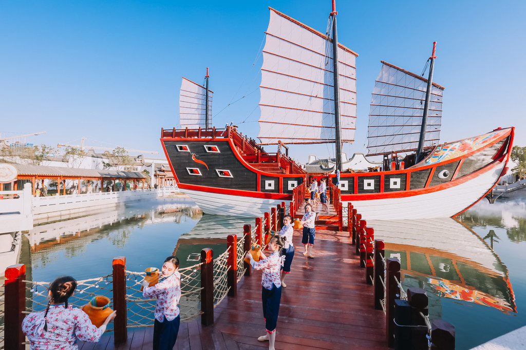 福船工坊是展示福州建船工艺的,据说郑和下西洋,用的就是福州造的船,叫福船,还有一项水密隔仓的技术,领先当时的世界几百年,可惜大明朝一个禁海,让我大中华开始落后西方。从福船工坊后门出来,就可以看到一个1:1比例打造的福船,上船亲身体验一下,幻想一下乘着船纵横在波涛凌冽的大海之上,海鸥在头上飞翔,鱼儿在船边奔驰,那是多么的豪迈惬意啊···