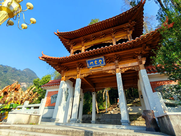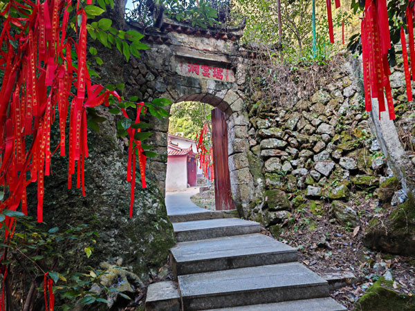 来到瑞云山的登云门,望着雕梁画栋的登云门是一座十分气派的牌坊式的阁楼。经过门楼就是通向山顶的蜿蜒曲折的石阶山道,大家由此逐级攀登向上爬,抵达山顶就是景区尤为著名的瑞云洞。
