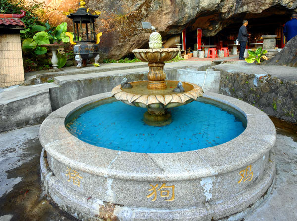 洞东北处,出山门而上,有一古树,苍劲挺拔,浓荫下涧水盘旋,人称长寿泉。泉旁有明洪武年间(1368~1398年)游人题刻“玉泉起瀑”。洞西南有避邪洞、小一线天、观鱼池等景观。
