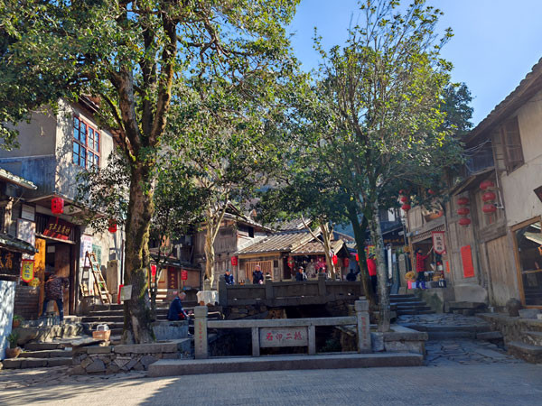 在石印三桥这里,面对着村中小巷,五颜六色的商家幌子的小店分布其中,其中伸向巷中悠长的青石板小路,感觉味道十足。这里小桥流水,曲巷通幽,构成了桂峰独特的历史文化景观。