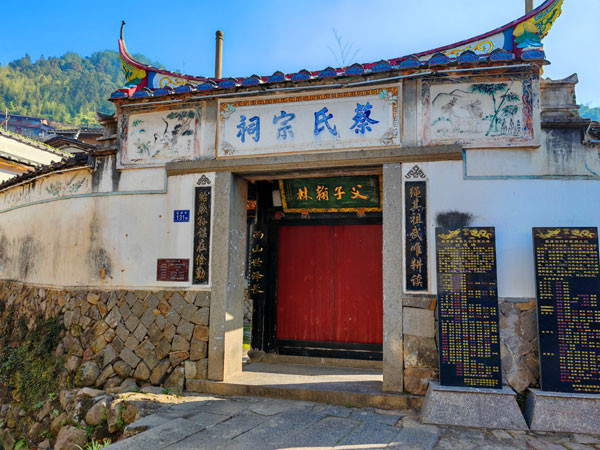 蔡氏宗祠位于石印桥上方,门口流淌着一条小溪,是蔡氏族姓最重要的纪念建筑之一。蔡氏宗祠是清康熙年间所建,因当地有不成文的规定,只有中了进士才能盖祠堂,所以蔡氏族人蔡茂相成为桂峰第一位进士以后才建。