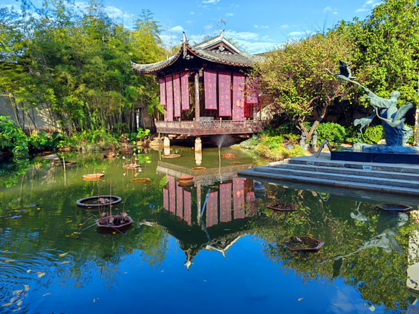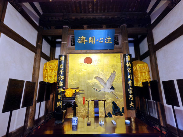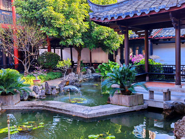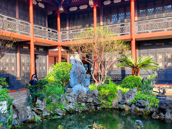 从树德堂出来绕阶缘屋来到花厅,这里有福州典型的园林建筑假山、鱼池和各种花草树木。“海纳百川有容乃大,壁立千仞无欲则刚”就是林则徐曾经在这个古色古香的厅堂里写下的手书对联。“海纳百川,有容乃大”亦成为体现福州城市的开放观念、豁达情怀和长远目光的表述语。