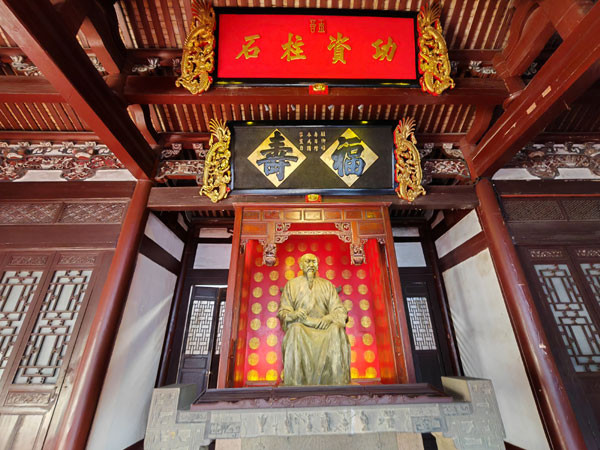 纪念馆御碑亭北侧即为正厅树德堂,这里是祭祀和庆典的重要活动场所。其左右回廊相通,回廊一侧悬挂着林则徐生平主要事迹简表,林则徐从政30余年、历官14省的历程一览无余。堂内高悬的“福寿”与“功资柱石”匾,是道光皇帝闻广东抗英初捷时赠给林则徐的。厅正中设龛立威严凛然的林则徐坐像,驻足塑像前,令人心生无限敬意和感慨。