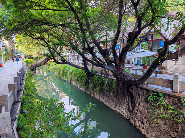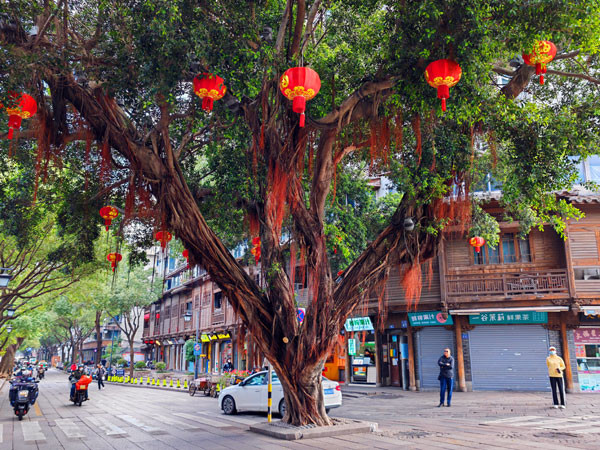 寻访三坊七巷,视野所见,这里的景观建筑很有特色。特别是在街心中看到的一棵大榕树,其茂盛的绿树形状,竟像一个大大的“心”的形状。真是一颗有大爱之心的树。令人印象极为深刻。