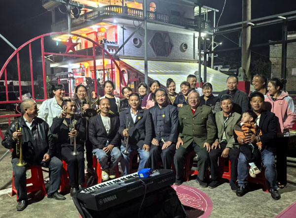 在共和国将军印鉴纪念墙前,一场激昂的音乐演奏会如同一束强光,瞬间照亮了活动的舞台。弟子们手持乐器,深情奏响《东方红》《山丹丹那个花开》《父老乡亲》等经典红歌。激昂的旋律似滚滚浪潮,在空气中汹涌澎湃,每一个音符都如同一颗璀璨的星辰,饱含着对共产党的深情歌颂,对革命先烈的深切缅怀。那熟悉的曲调,宛如时光的隧道,将人们带回到战火纷飞的峥嵘岁月,让大家真切地感受到革命先辈们为了理想信念,不惜抛头颅、洒热血的英勇无畏精神。现场众人沉浸在这如泣如诉的音乐中,心灵仿若经历了一场春雨的洗礼,被深深震撼。