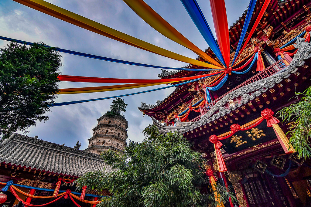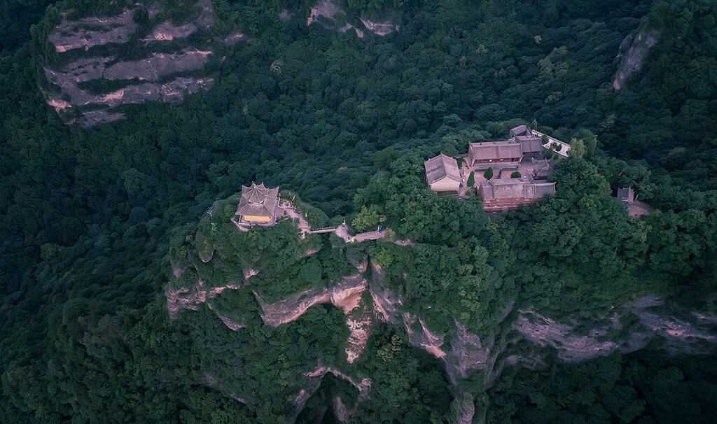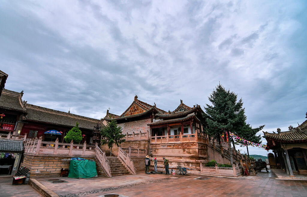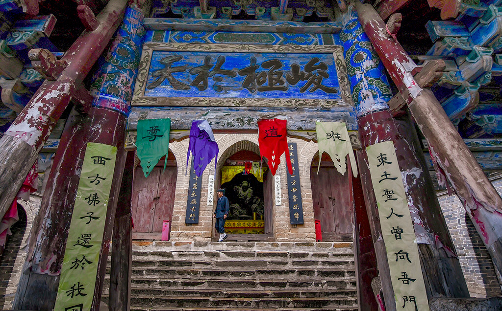 道教威名,佛教昌盛 一路上我和旅游局的丁主任边聊边拍,不知不觉就从香山顶来到了中台,丁主任对崆峒山很了解,我很多的疑问都是向他请教的。他告诉我:崆峒山是座包容之山,其最负盛名要数“三教洞”了。洞内释迦牟尼、太上老君、孔老夫子塑像供于一堂,佛、道、儒三教共存共尊,正所谓“海纳百川,有容乃大”。我们刚才从道教的范围下来,现在中台就是佛教领域,最值得去的是观音堂和塔院。
