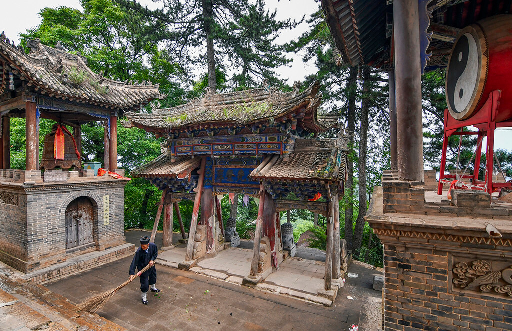 空山无语,幽径独行。穿行在这九宫十二院,不时能遇见修行的道人,那种闲庭信步,超脱凡尘的气质由内及表。道家讲究的是修心、养生,阴阳调和,武术只是他们修行的一部分,道教的最高境界为:齐家之理与治国之道。