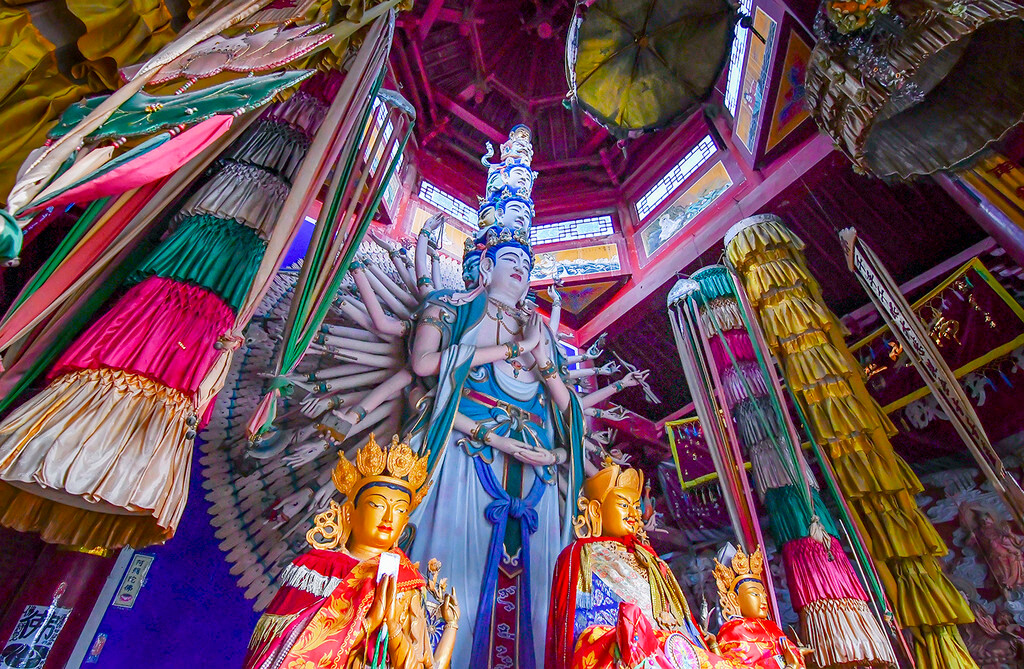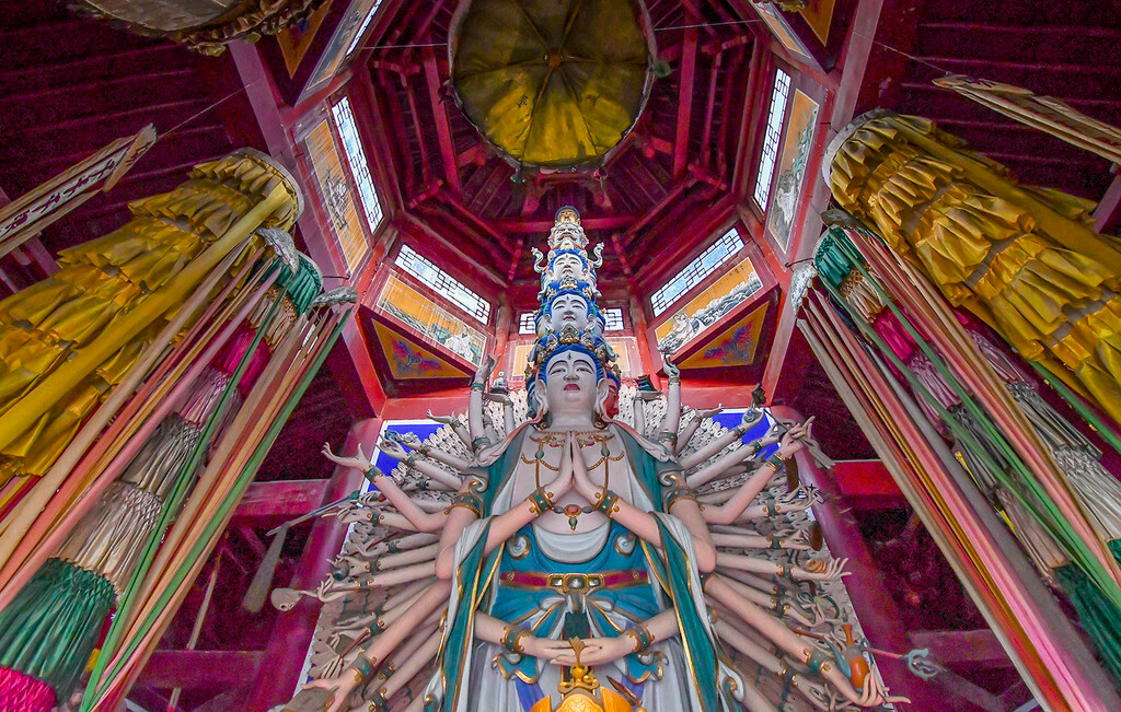 观音堂中最大的亮点就是美轮美奂的千手观音,无论你从那个角度去看,总是逃脱不了菩萨的注视,你能感受到她的气场,带来的是心灵的震撼。