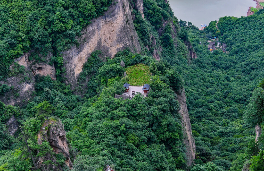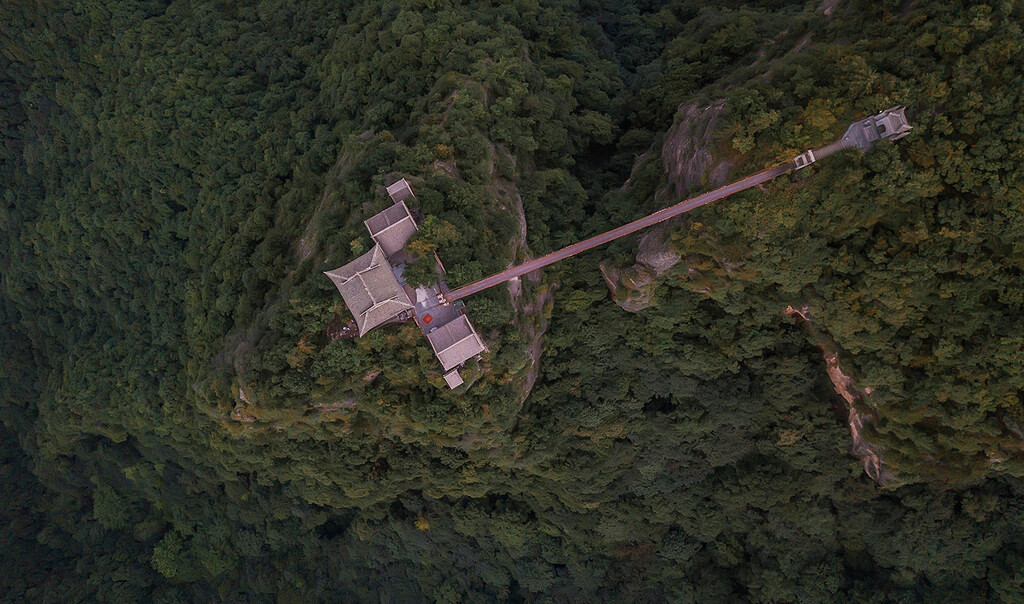 北台上的观音堂建筑在一处孤峰之上,始建于唐代,复修于1994年,通往观音堂孤峰的桥梁叫做“朽木桥”,以前曾是一座需要虔诚心渡过的试心独木桥,从高空俯瞰,更为险峻,现已改建成为了钢筋水泥的折桥,安全得到了保障,但却无法体会原来朽木桥的意境。