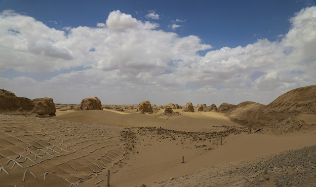 我们没有去西台吉乃尔湖,就返回来走南八仙去了魔鬼雅丹城,“南八仙”的名字是为了纪念解放初期在此牺牲的八位女地质勘探员。去魔鬼雅丹城经过一段无人区,寸草不生,手机也没有信号,估计就是现在往深处走也是很危险的。