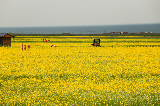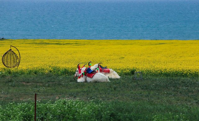 在湖边牧民把自己家的花田装饰一下,每人花十元钱就可以进去拍照,骑马、骑牦牛照相另算钱。