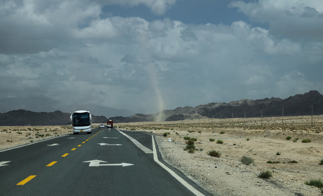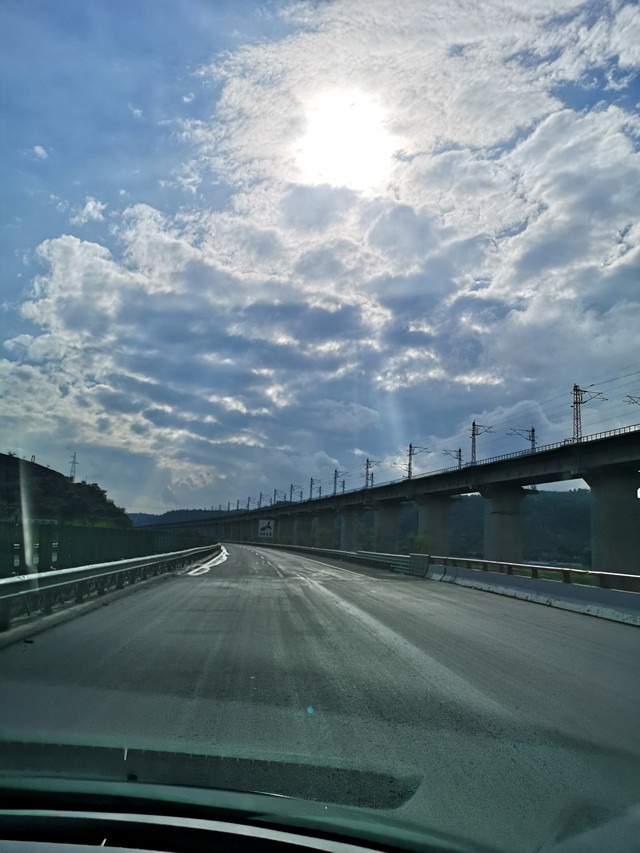 下雨我们大概用了半天就逛完古城。直接上高速去中卫沙坡头。在高速上跑了一个多小时,天放晴了。一道耶稣光透过云层照射下来美极了。