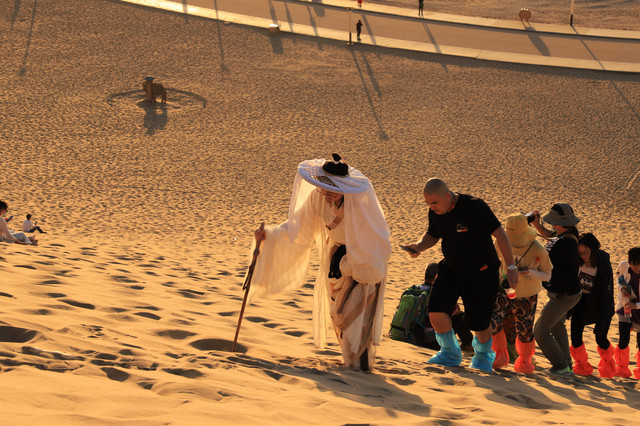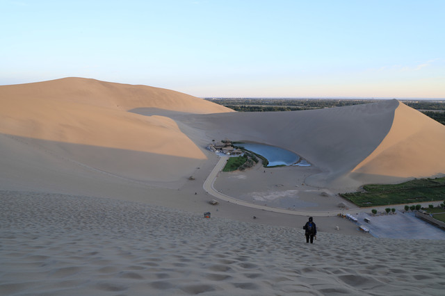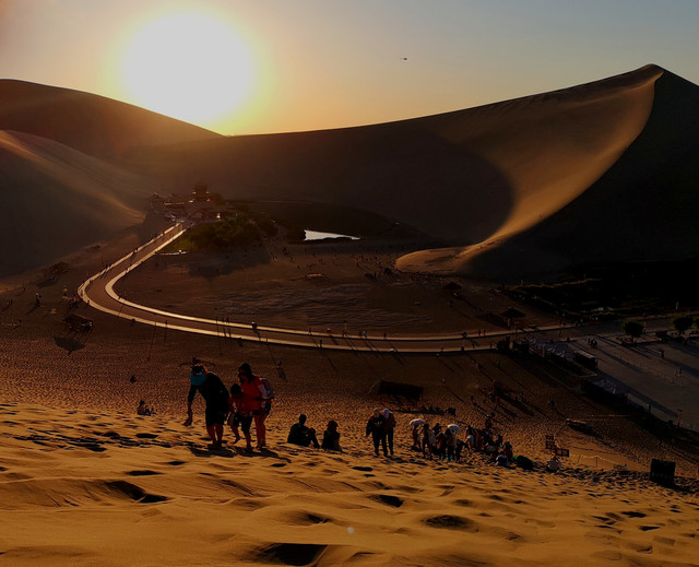 早上没拍到日出,下午终于拍到了落日。就是一天两趟鸣沙山,老胳膊老腿实在是有点受不了了。