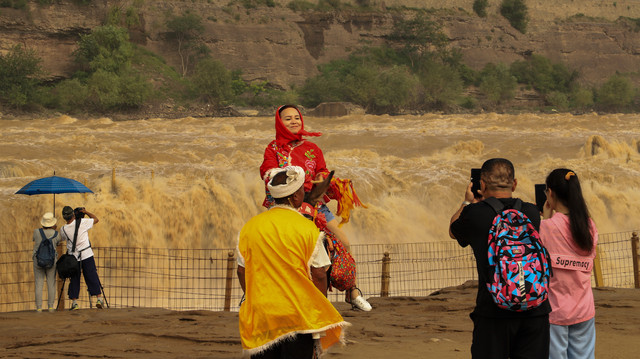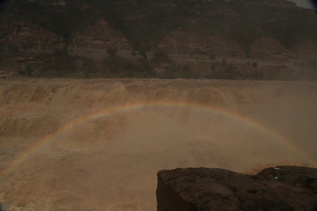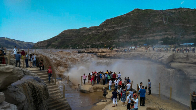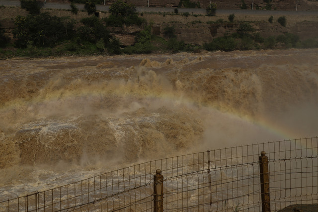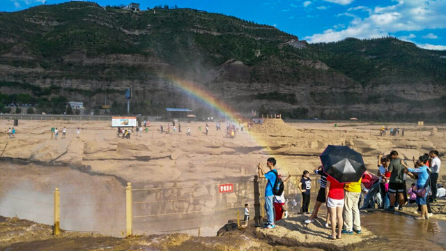 在吉县看壶口瀑布最好在上午9点左右,晴天的时候很容易看到彩虹。今年黄河水大,壶口瀑布更壮观了。