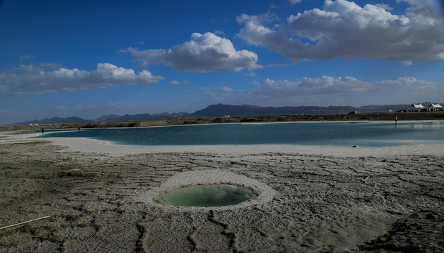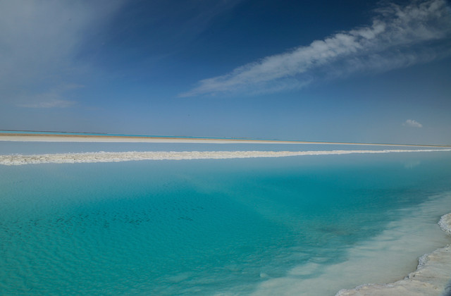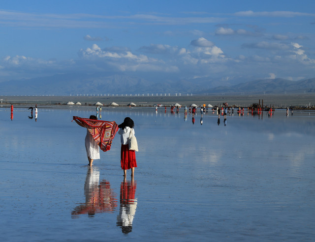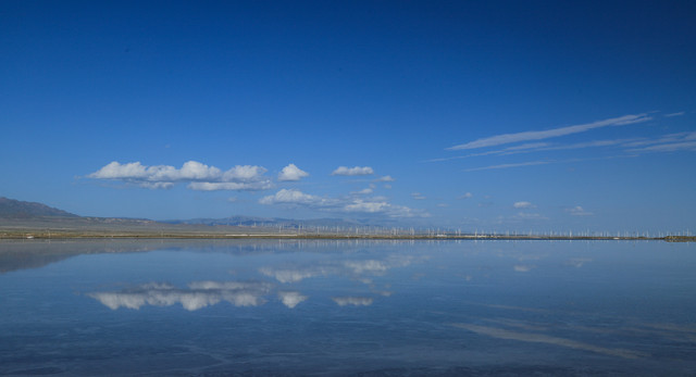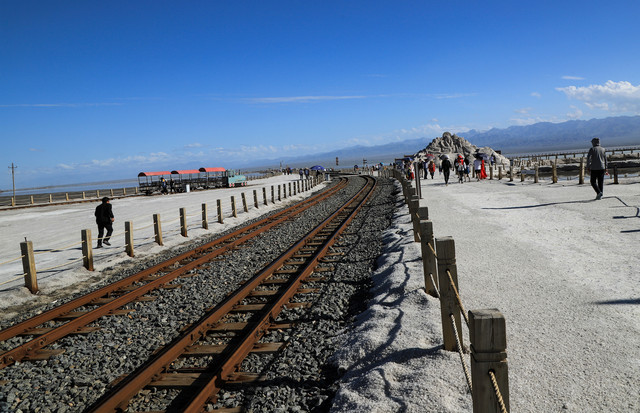 有中国马尔代夫之称的东台吉乃尔湖,就是盐场采盐完毕后留下的盐湖。没有门票,只是盐矿上收取每车10元的停车费。