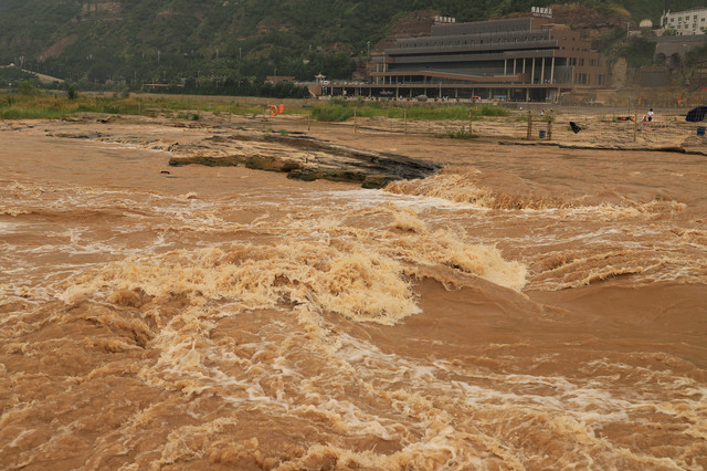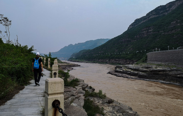 我们去的时候黄河水位上涨,河边的栈道冲坏不少,河面上漂流的人少了许多。